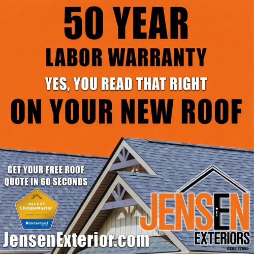 For more than 40 years, homeowners have trusted Jensen Exteriors Roofing and Siding for high-quality roof and siding replacements designed to protect your home and elevate its curb appeal. If your roof is aging, worn out, or ready for an update, now is the perfect time to invest in a durable new roofing system built to handle the elements year after year. Every installation is completed with premium materials and backed by our up to 50 year labor warranty for total peace of mind.